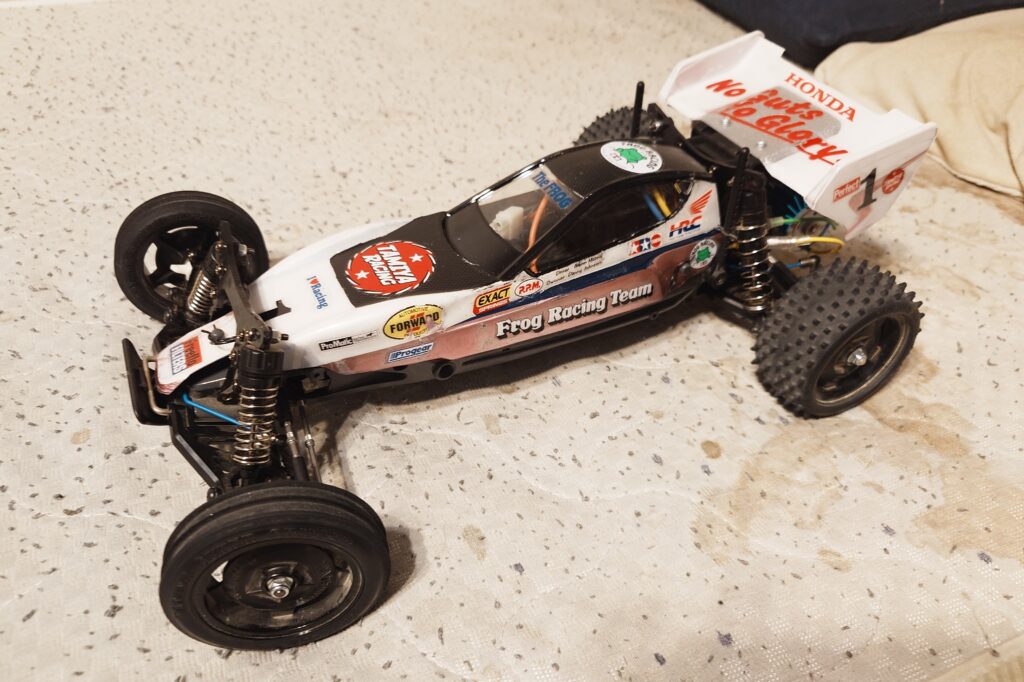 マイティフロッグは設計が40年以上も前のラジコンなので、最近のジャンプ台でばいーんと飛ぶなんてことは余り想定はされておらず、補強等の改造が必要になってくる。