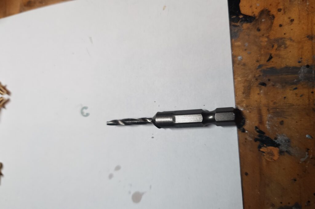 少々考えた結果、上記の画像でも分かる通り、反対側にも穴を開けたうえで思い切り長いビスを通してしまおうことにした。今回は長さ27mmのビスを使っている。