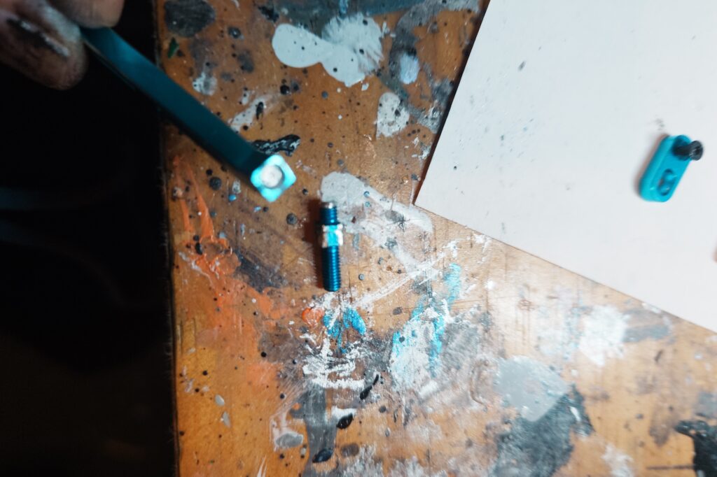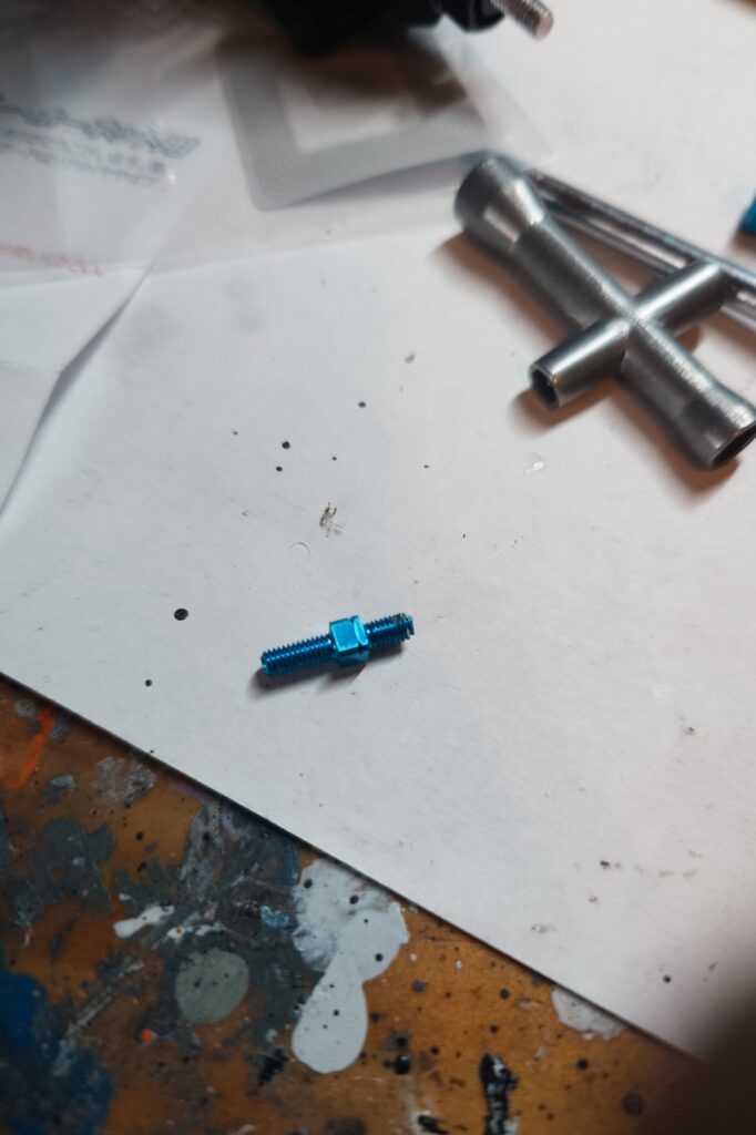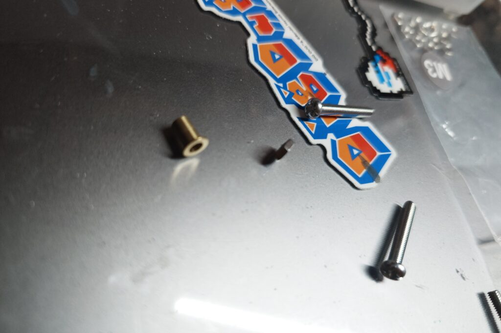使ったのは先日購入したビスの袋詰めに入っていた(多分)3mm径/15mmのタップビスと、ターンバックルセットか何かに入っていて使わなかったスペーサー、あとは3mm六角ナット。