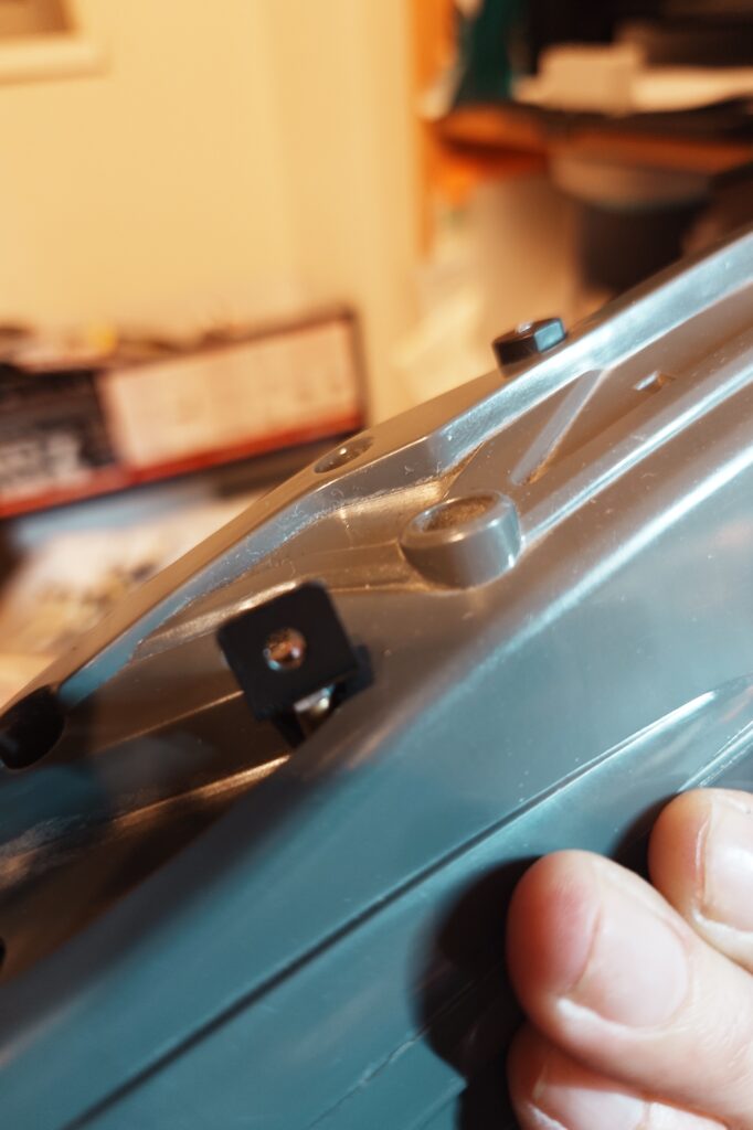 ただ、甘くはなかった。サイドガード側の穴の深さが足りない。ので、サイドガード側のシャフトを5mmくらい(適当)ペンチでカット。