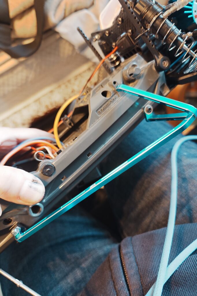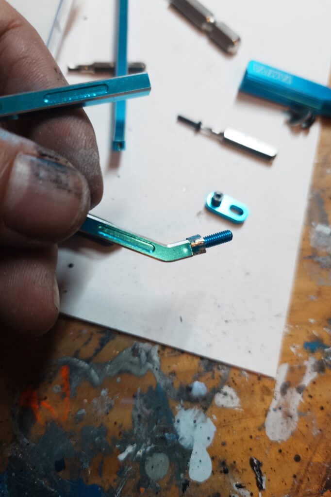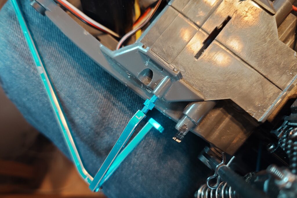 穴の拡張が足りなくてターンバックルシャフトがねじ折れた…。サイドガードの穴にターンバックルシャフトの残骸…。