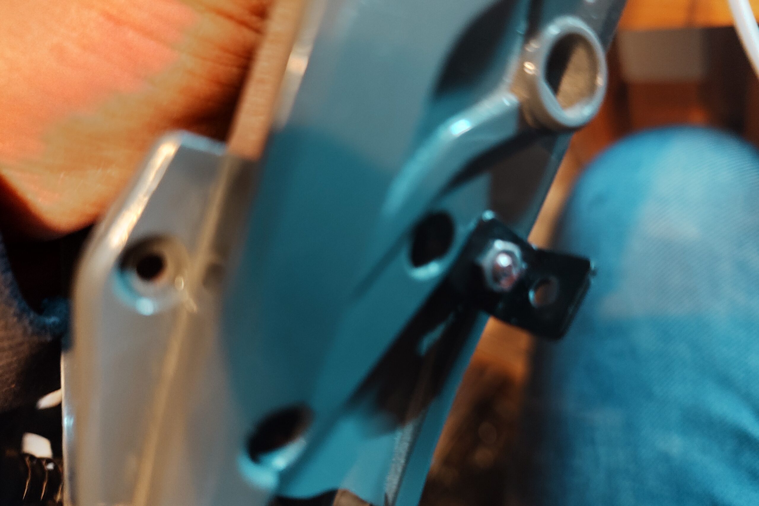 穴の拡張が足りなくてターンバックルシャフトがねじ折れた…。サイドガードの穴にターンバックルシャフトの残骸…。